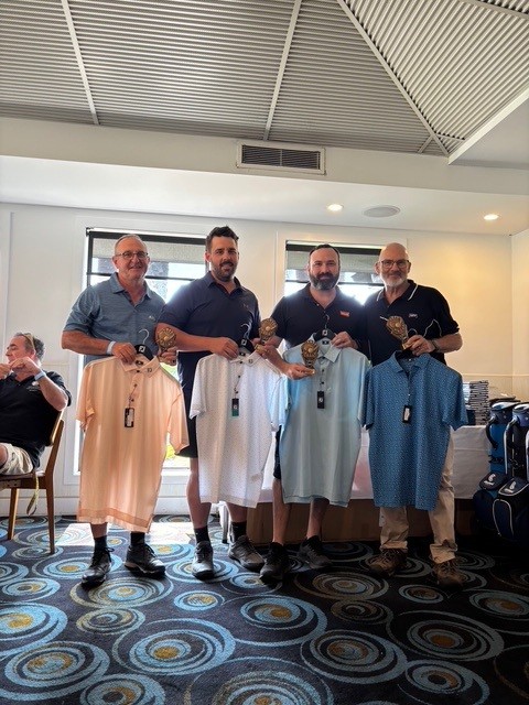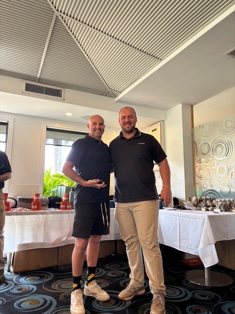 After lunch, we kicked off the official presentations, led by none other than our much-loved and soon-to-retire sales representative, Des Janetzki. Des took the mic to thank all of our amazing supporters, hole sponsors, and players — and to hand out a mountain of prizes.